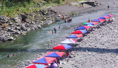 Because the river water is warmed by the springs, many families come here to swim although the rocky river bed looked like an uncomfortable place to sit for any length of time.