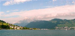 Luzern is beautiful and the sun was shining as we rode along the river. Karen felt a bit emotional, remembering a happy holiday here with her mum and dad in 1973. Later we sat overlooking the lake and low mountains to eat lunch. The cycle route runs along the lake shore which has such clear blue water. The high mountaintops were covered in low cloud.