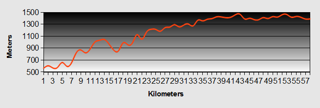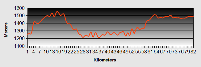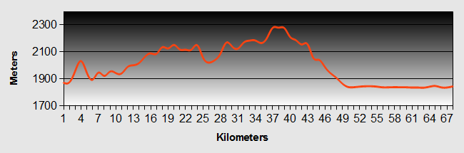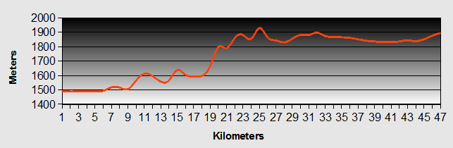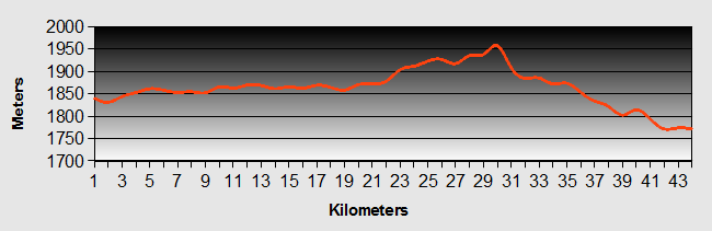 With relief we reached the highest point after 70km at 2,187m. The guard on duty looked a bit tired and didn't pay us much attention. After that we expected a nice long downhill but there were still a few short hills to go.