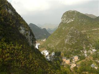 Just before the start of the first climb we saw a traffic accident. A bus had come down the hill and smashed into a tree at the side of the road. As we climbed up and up there were a lot of landslips, with large parts of the road fallen hundreds of feet into the valley below. A second accident involving a lorry and a car made us think about the advice of the English teacher. The views over the Guizhou mountains were wonderful and although it seemed remote there were always plenty of people around, walking along the roads, tending their land, herding their cattle and ponies.