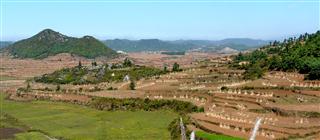 The G324 climbs up a hill out of the city on a concrete road. The concrete surface has been cut into strips and roughened, presumably to slow the downhill traffic, but it made for a very uncomfortable ride up.We expected the road to be just as busy as yesterday but there was much less traffic, and most of the heavy trucks turned off after about 5km so from there the road was quiet.