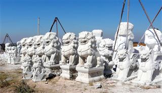 The route to Shilin followed the G324, which was a dual carriageway, an improvement on yesterday, but there were some big holes in the tarmac. Most of the traffic uses the G78 so it was fairly quiet.The stone carvers on this road were producing lions, all shapes and sizes