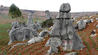We arrived at the outskirts of Shilin at 12.30 and had lunch in one of the numerous roadside restaurants. We wanted to sit at one of the outside tables in the sunshine. The staff were nervous about serving us and seemed to be drawing straws for who got the task. Eventually a waitress brought us a menu with an English section and we ordered what everyone else was eating, the roast duck. They brought us a whole one, complete with head, whose accusatory gaze was a bit off putting.