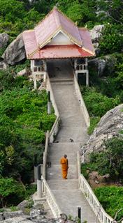 Macau MonkeysAt the top is Wat Thammikaram, established by King Rama VI. It was a clear day and the views were spectacular. We could see across to the airforce base and the karst islands to the south and peered up the coast to the north attempting to forsee our Ranong to Bangkok route for the day. To the west was the temple below and the hills of Myanmar, only 12km away. Unfortunately the temple itself was in a poor state of repair, with nearly all of the roof tiles missing and badly needing a coat of paint.