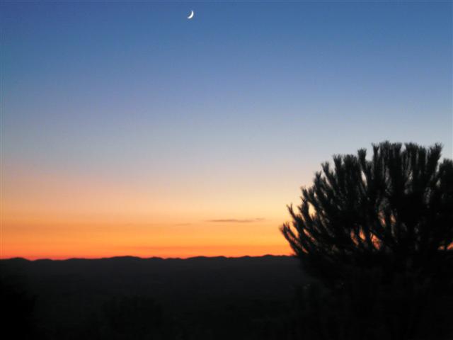 The sun set and we were left with a biblical scene, the sky fading from bright blue to orange at the horizon and a new moon in the sky. By the time we had finished our dinner the sky was dark and filled with billions of stars. We looked in wonder and awe. It was getting cold and the mozzies were extremely hungry. Needless to say we had an early night. We read our books for a short while and tried to get some sleep whilst we listened to the baying of distant dogs.