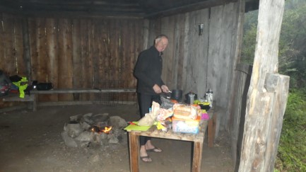 Warm and dry at lastIt was hard work finding enough dry wood to keep the fire burning and get the gear dry but after a hot meal we felt better and settled down to sleep, even though the noise of the rain hammering on the metal roof would make it difficult.