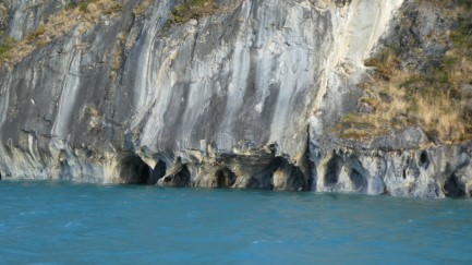 Lago General CorreraThe General Correra lake is famous for its Marble Caves, a marble cliff on the lake shore which has been sculpted by the water into beautiful formations. We brought tickets for a two hour boat trip to see them on the evening we arrived. The advice was to visit early in the morning, when the rising sun reflects off the rock and the water is calm. So we got tickets for the 8am boat.