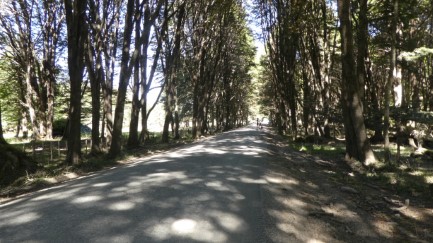Shady roadAt times, even where the road was flat, it took less energy to get off and push than stay on the bike. Despite the torture of the road, the valley itself was beautiful and the deep turquoise waters of Lake General Correra cheered us up. Too fatigued to be bothered to put up the wet tent when we arrived in town, we booked into a small B and B for two nights.