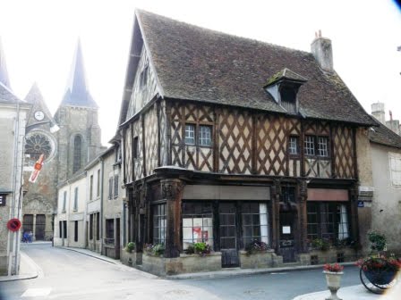 We stopped in Fontaines en Sologne which had a lovely market hall in the middle of the town. It was a wood and brick structure supported on thick wooden pillars forming a raised hall. Underneath was a paved area where people could walk. We bought something for second breakfast and continued out of town towards Bracieux. This is a lovely market town with a nice center.