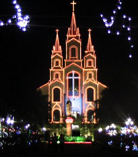 The churches were all decorated for Christmas and the large one across